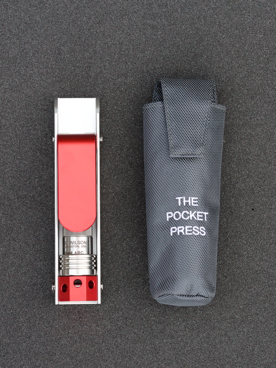 The Pocket Press™ enables precise bullet seating at the range, away from the loading bench. Crafted from anodized aluminum, stainless steel, and bronze, this patent-pending tool is ultra-compact and lightweight and slips easily into a range bag or pocket.